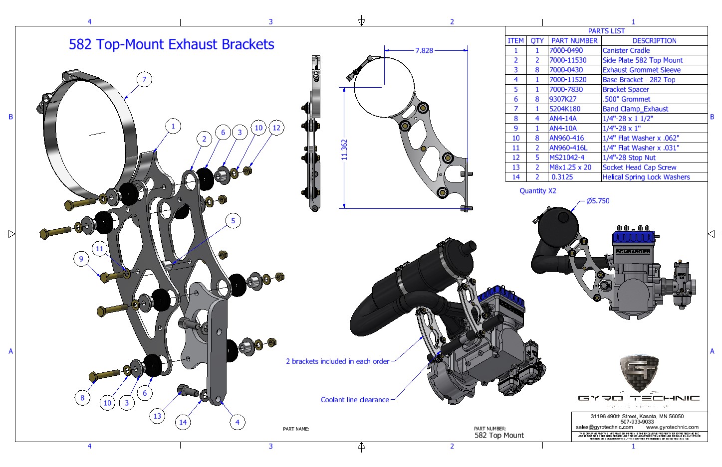 Secure, vibration dampening mounts to secure your Rotax 582 exhaust in the upper position
